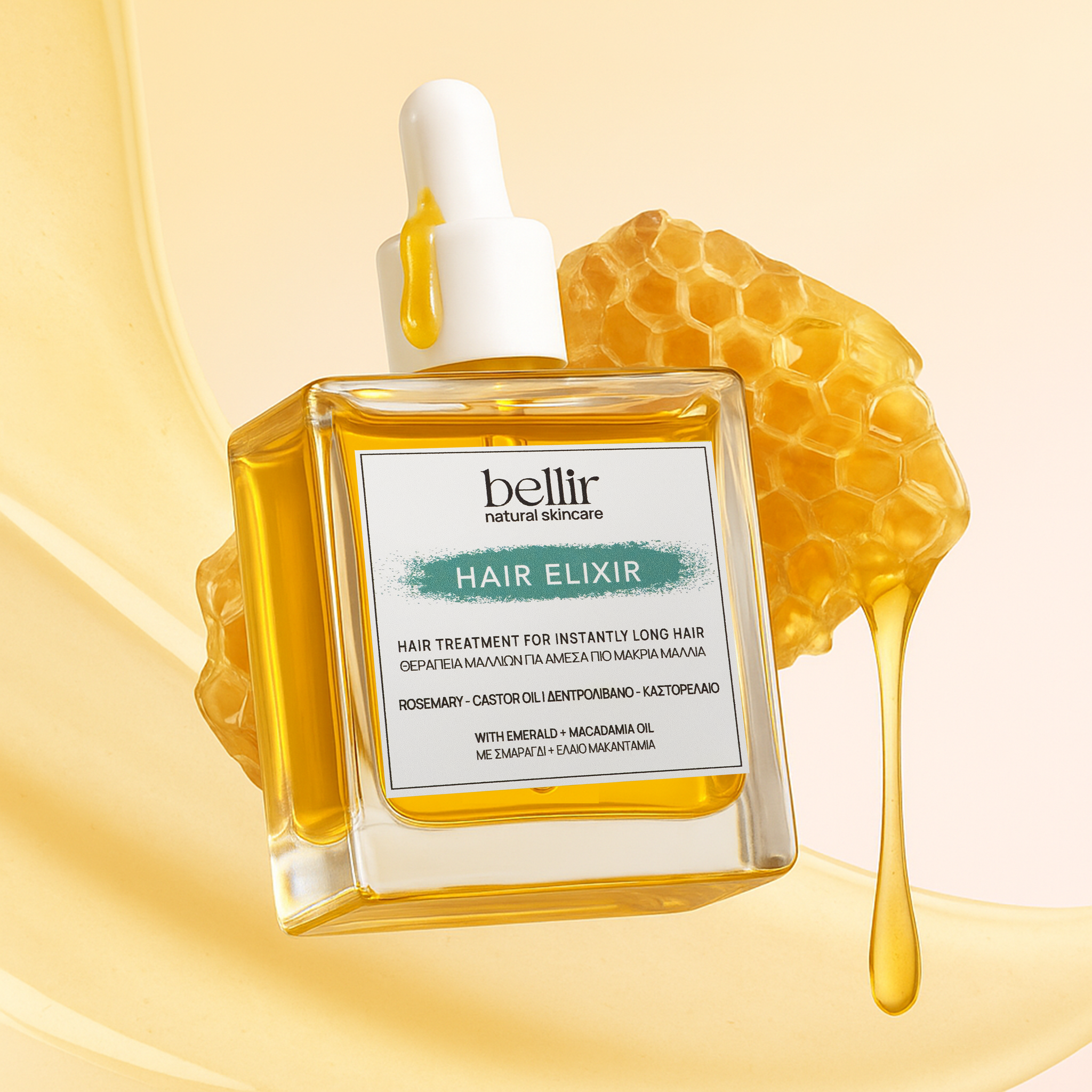 Το Hair Elixir είναι μια θεραπεία βαθιάς αναδόμησης των μαλλιών που θρέφει σε βάθος, ενισχύει την ανάπτυξη των μαλλιών και χαρίζει δύναμη και λάμψη στα μαλλιά. Ο συνδυασμός δεντρολίβανου, καστορέλαιου και ελαίου μακαντάμια επανορθώνει τα ταλαιπωρημένα μαλλιά, ενώ το σμαράγδι ενεργοποιεί την ανανέωση της τρίχας, χαρίζοντας πιο δυνατά και μακριά μαλλιά.